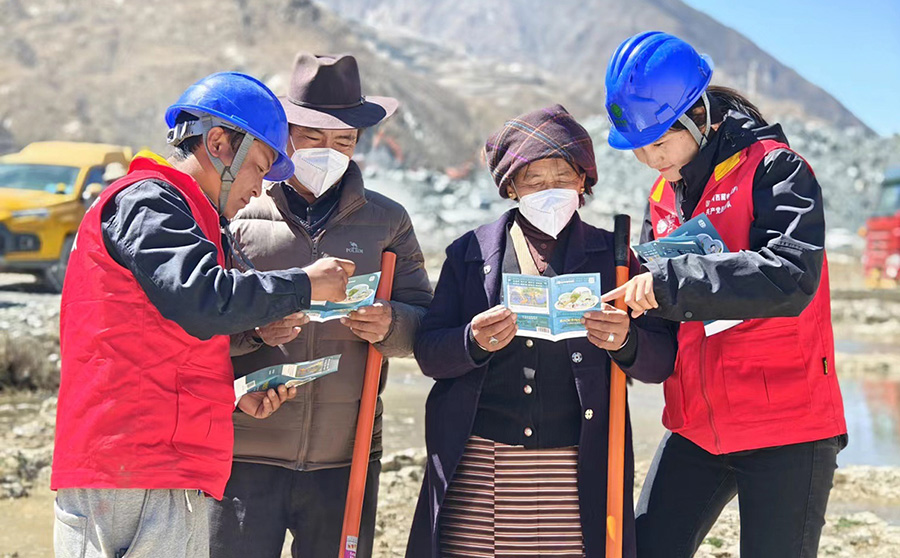 國網曲水縣供電公司共產黨員服務隊在拉薩市曲水縣茶巴拉鄉(xiāng)色麥村開展春耕春灌安全用電宣傳(4月7日攝)。國網西藏電力供圖 旦增央卓 攝