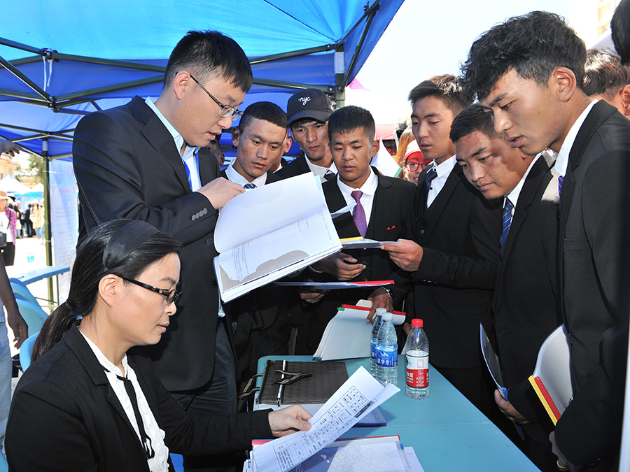 國網西藏電力有限公司人資部組織參加2018年中央企業(yè)區(qū)內國有企業(yè)面向西藏高校畢業(yè)生和貧困家庭勞動力專場招聘會(2018年9月6日攝)。國網西藏電力供圖