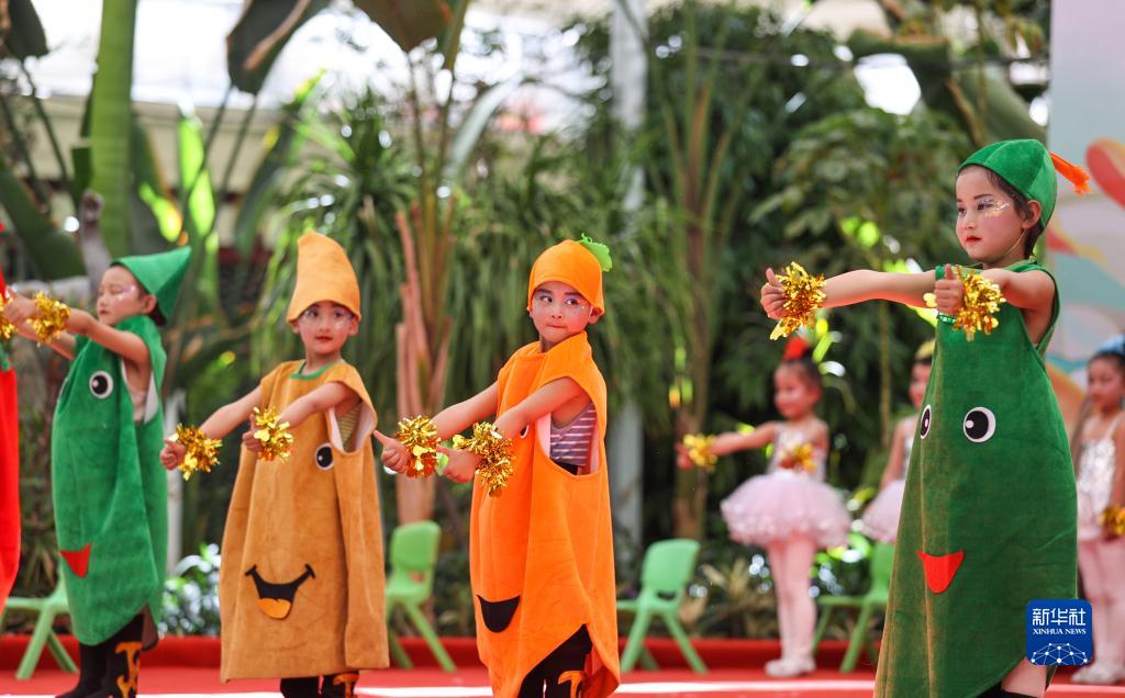 5月28日,小朋友在第十屆白朗果蔬采摘節(jié)開幕式上表演節(jié)目。新華社記者 姜帆 攝
