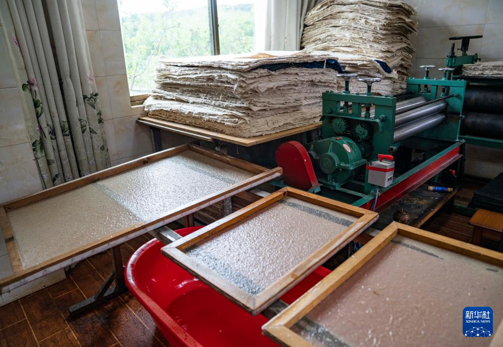 這是制作完成后正在晾曬的藏紙(7月26日攝)。新華社記者 孫非 攝