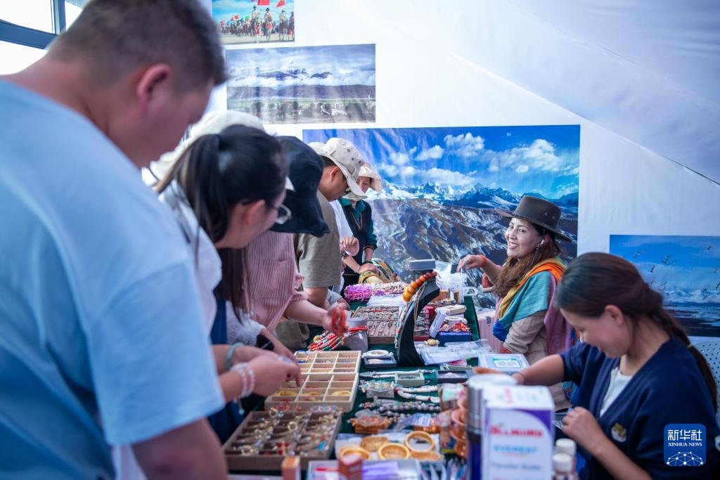 近日,西藏阿里地區(qū)舉辦物資交流會(huì)暨旅游紀(jì)念品展銷會(huì),吸引游客參觀購(gòu)買。特色產(chǎn)品展銷會(huì)帶動(dòng)阿里旅游經(jīng)濟(jì)發(fā)展,助力農(nóng)牧民增收致富。