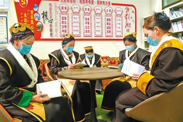 圖為林芝市工布江達(dá)縣金達(dá)鎮(zhèn)加龍村的群眾在農(nóng)家書(shū)屋讀書(shū)。記者 王敏 攝