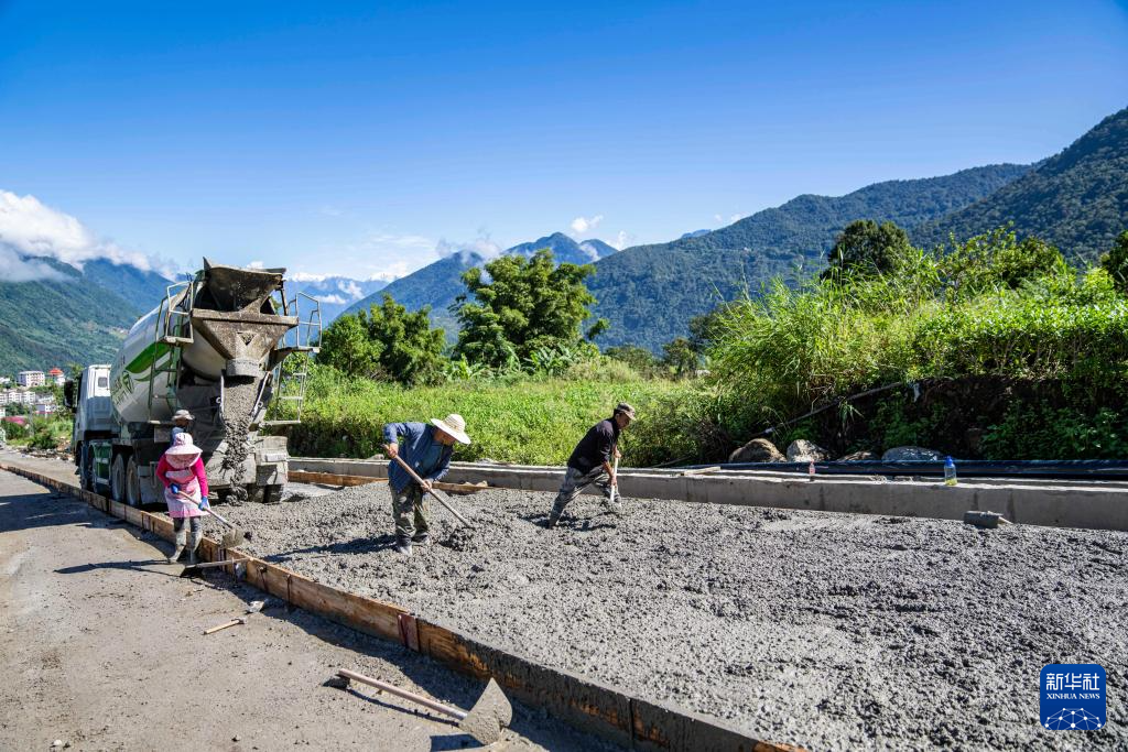 工人們在墨脫縣修筑鄉(xiāng)村公路(2023年10月13日攝)。新華社記者 孫非 攝