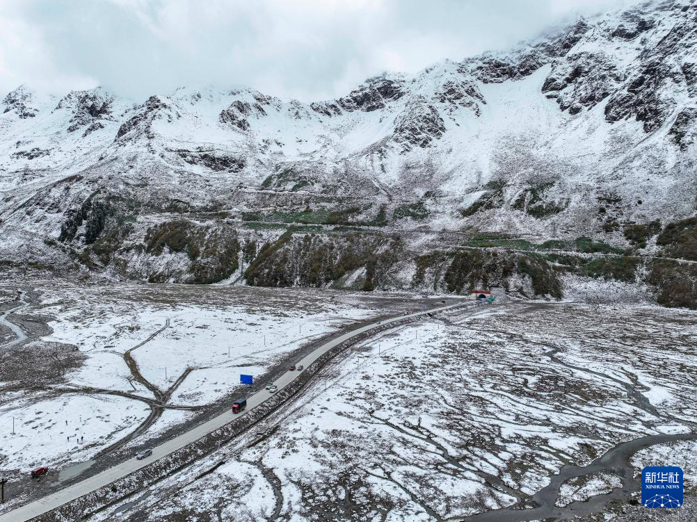 這是波墨公路嘎隆拉隧道出口(2023年10月15日攝,無人機照片)。新華社記者 孫非 攝