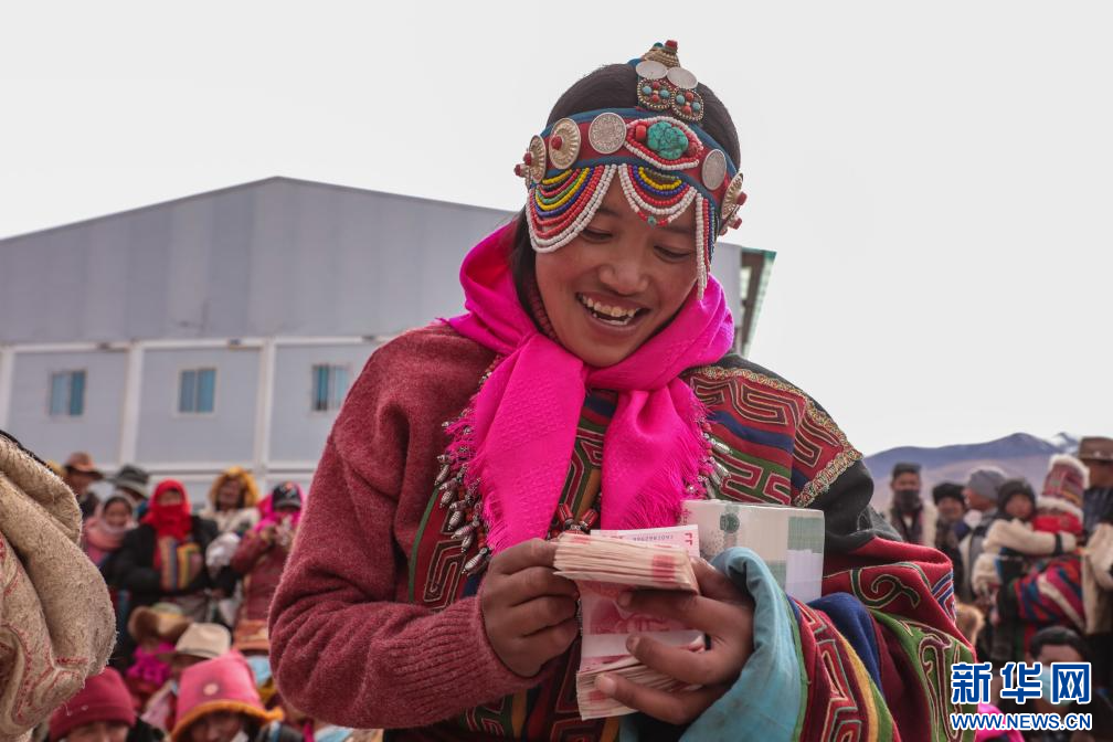 西藏阿里茶措村 牧民笑顏領分紅