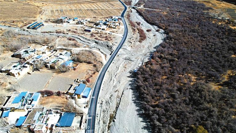 12月12日,山南市瓊結(jié)縣拉玉鄉(xiāng)鄉(xiāng)村旅游公路拓寬工程項目通車儀式在拉玉鄉(xiāng)白那村舉行。該公路長度為10.18公里,路基寬度為7.5米,屬于三級公路,總投資3500萬元。這條鄉(xiāng)村旅游公路的建成通車,不僅方便周邊村民出行,同時對開發(fā)當(dāng)?shù)剜l(xiāng)村旅游資源具有重要價值。 拉玉鄉(xiāng)鄉(xiāng)村旅游公路(無人機照片)。本報記者 白瑪澤旺 攝