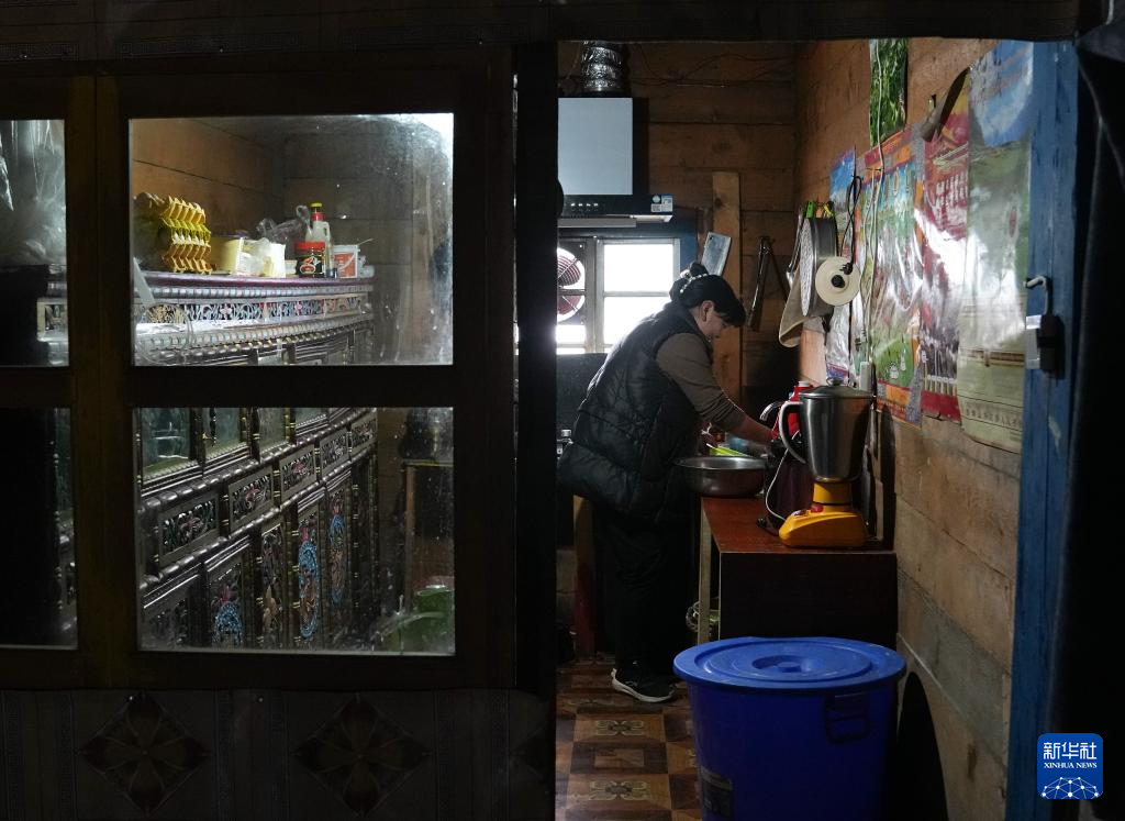 洛松頓珠的母親次吉在廚房內(nèi)為旅客準備晚餐(4月2日攝)。新華社記者 丁汀 攝