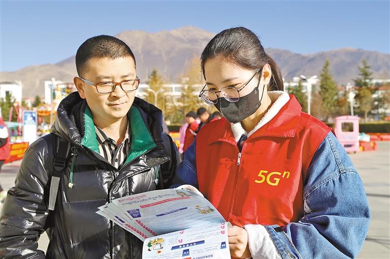 圖為電信、移動(dòng)、聯(lián)通山南分公司工作人員在山南市體育場開展“文明用網(wǎng) 安全用網(wǎng)”專題宣傳教育活動(dòng)。 記者 武沛濤 攝