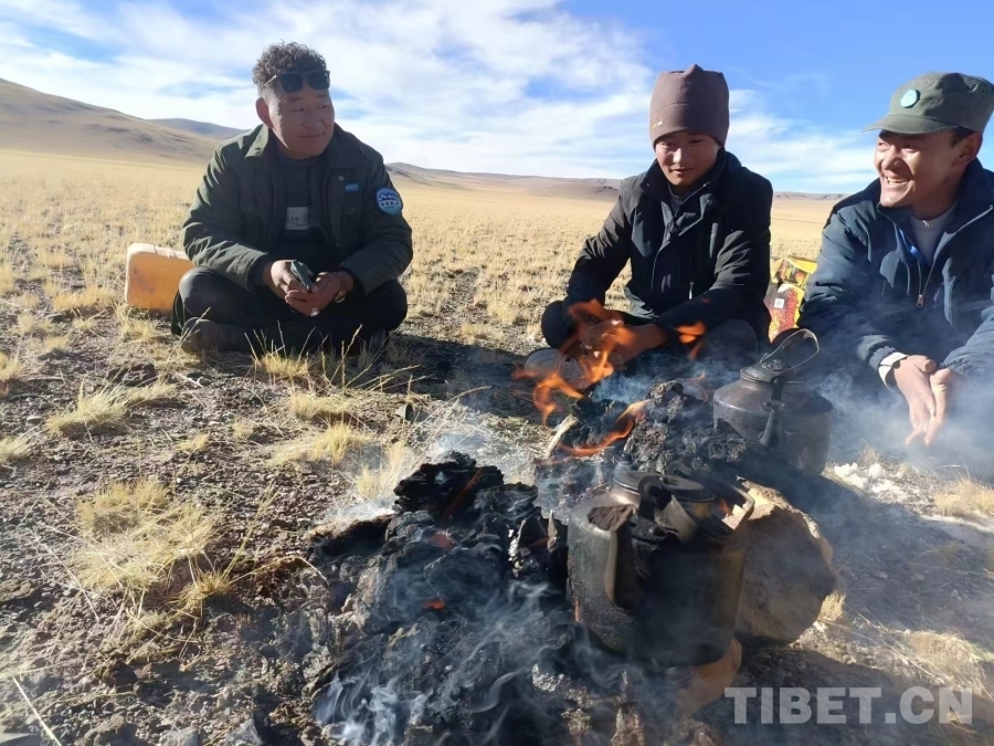 圖為麻木卓瑪管理站站長洛達和同事們在外巡護(洛達為右一)