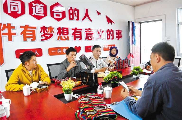 那曲市安多縣的大學畢業(yè)生倉秋多吉聯(lián)合6人創(chuàng)業(yè),于2021年創(chuàng)辦了安多托尕爾倉游牧產(chǎn)業(yè)有限責任公司。公司搭建了民族手工藝產(chǎn)品、土特產(chǎn)銷售平臺,在當?shù)卣畠?yōu)化營商環(huán)境政策的支持下,創(chuàng)業(yè)團隊逐步擴大,帶動了當?shù)剞r(nóng)牧民產(chǎn)業(yè)興旺?!D為倉秋多吉(左二)和團隊核心成員商討產(chǎn)品銷售提升策略。(資料圖片) 新華社記者 張汝鋒 攝
