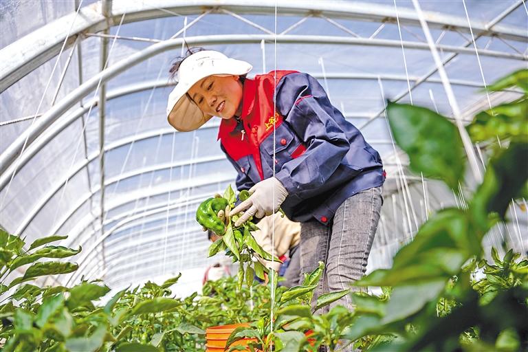 拉薩冬意漸濃,園區(qū)連片的溫室大棚,在冬日暖陽(yáng)下熠熠生輝,宛如一個(gè)個(gè)孕育希望的“菜籃子”,豐富冬日市場(chǎng)供應(yīng)。走進(jìn)蔬菜大棚,棚內(nèi)暖意融融、綠意盎然,黃瓜、西紅柿、青椒等各類蔬菜均已進(jìn)入成熟期,長(zhǎng)勢(shì)十分喜人。眼下,正是大棚青椒采摘期,一壟壟、一株株青椒掛滿枝頭,工作人員三五成群忙著采摘,現(xiàn)場(chǎng)一派繁忙景象?!安烧嘟芬蛏险?,這樣才不會(huì)損傷植株?!痹诘┰銮闹笇?dǎo)下,工作人員很快完成了采摘工作,打包、稱重后,37袋青椒被整齊地?cái)[放在一起,等待著裝車發(fā)貨。