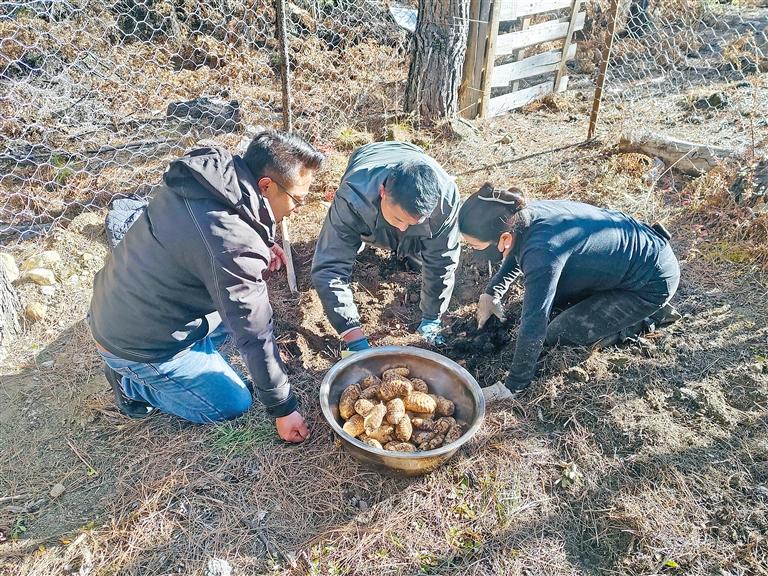 西藏波密高原藏天麻產(chǎn)業(yè)開(kāi)發(fā)有限公司工作人員在給群眾傳授藏天麻種植技術(shù)。圖片由西藏波密高原藏天麻產(chǎn)業(yè)開(kāi)發(fā)有限公司提供
