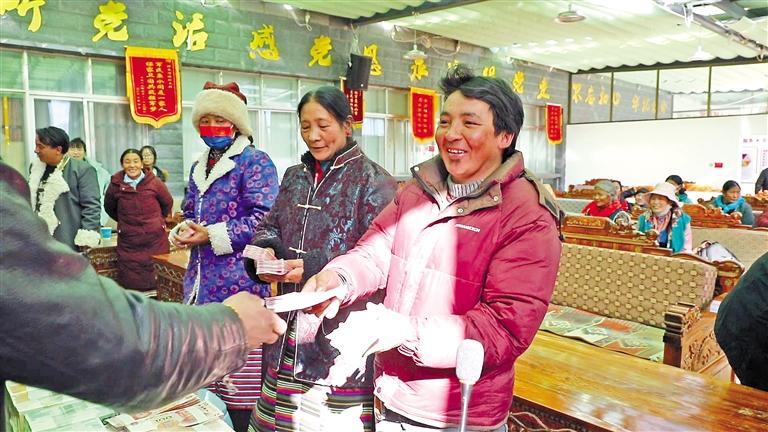 圖為噶爾縣獅泉河鎮(zhèn)加木村合作社分紅現(xiàn)場。 圖/文 記者 永青 達(dá)珍 洛桑旦增