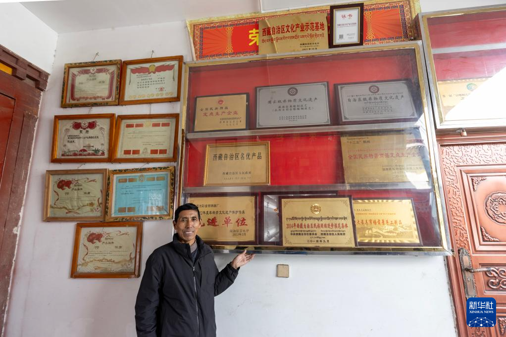 廠長拉巴瓊達是這項非物質(zhì)文化遺產(chǎn)的代表性傳承人。如今,他帶領(lǐng)18個匠人和學(xué)徒把廠子做得紅紅火火,2024年平均每個工人每月收入達到7000多元,靠非遺手藝實現(xiàn)了共同富裕。