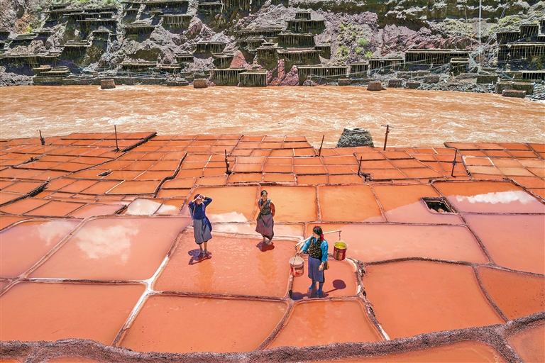 圖為芒康縣納西民族鄉(xiāng)加達村村民在鹽田勞作。記者 丹增群培 攝