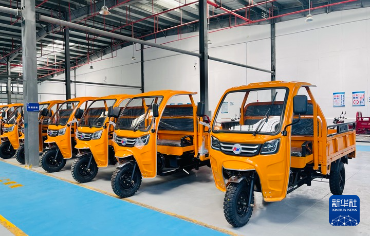 6月8日,西藏吉隆瑞尼機械制造有限公司倉庫內(nèi)等待出口的三輪車。新華社記者蔣夢辰 攝
