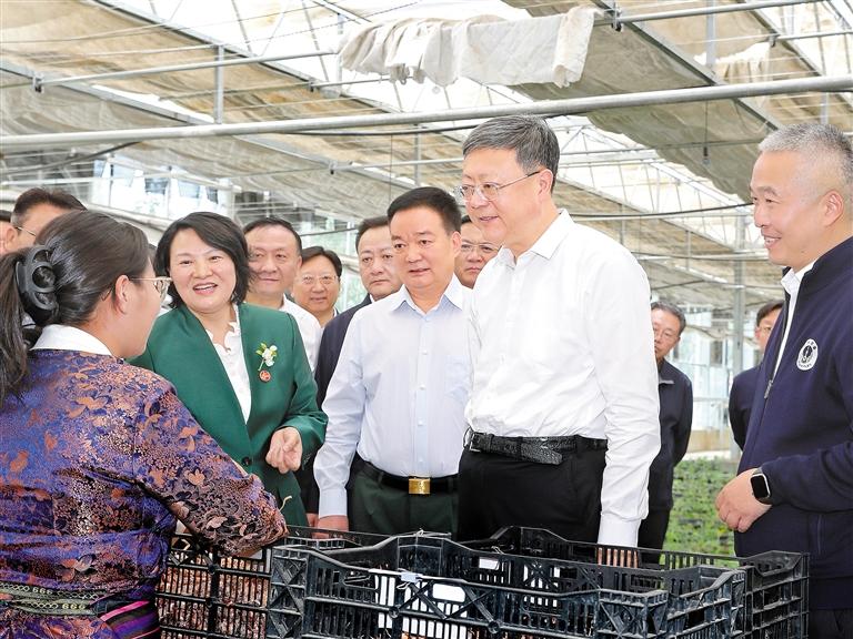來到薩迦縣國(guó)家現(xiàn)代農(nóng)業(yè)產(chǎn)業(yè)園,溫室大棚內(nèi)作物長(zhǎng)勢(shì)良好,一派生機(jī)盎然。近年來,在自治區(qū)黨委的大力推動(dòng)下,上海市援藏力量主動(dòng)作為,助力當(dāng)?shù)卮罅Πl(fā)展高原特色農(nóng)業(yè),不斷拓寬群眾增收渠道。代表團(tuán)走進(jìn)產(chǎn)業(yè)園,聽取高原藜麥種源科技和產(chǎn)業(yè)發(fā)展、藏紅花種植技術(shù)創(chuàng)新和產(chǎn)業(yè)幫扶情況介紹,察看相關(guān)產(chǎn)品展示,與園區(qū)、企業(yè)負(fù)責(zé)人和科研團(tuán)隊(duì)深入交流,就進(jìn)一步推進(jìn)高寒地區(qū)現(xiàn)代農(nóng)業(yè)全產(chǎn)業(yè)鏈高質(zhì)量發(fā)展進(jìn)行討論。兩地同志表示,要立足雙方優(yōu)勢(shì),把上海資金、管理、科技、人才等優(yōu)勢(shì)與西藏資源、區(qū)位等優(yōu)勢(shì)相結(jié)合,進(jìn)一步做強(qiáng)特色產(chǎn)業(yè)、打響高原品牌,在以銷定產(chǎn)、產(chǎn)品推廣等方面開展深度合作,促進(jìn)西藏優(yōu)質(zhì)資源變成好產(chǎn)品、走向大市場(chǎng)、賣出好價(jià)錢,有效帶動(dòng)群眾就業(yè)增收,讓各族群眾錢包鼓起來、日子好起來。