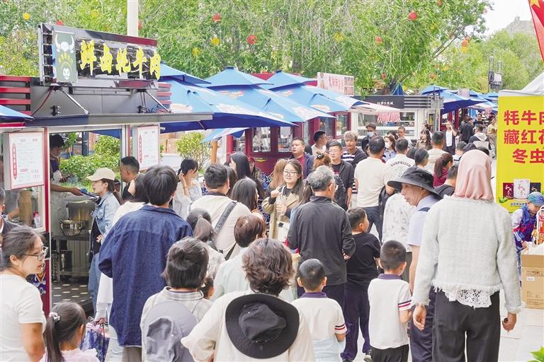 “拉薩不夜城”位于宇拓路的核心地段,銜接布達(dá)拉宮與大昭寺,全長(zhǎng)370米。該項(xiàng)目以“文旅商融合·新業(yè)態(tài)新場(chǎng)景”為發(fā)展定位,緊扣“潮流煙火氣”主題,采用對(duì)稱式街區(qū)布局,精心打造集“夜游、夜購(gòu)、夜宴、夜娛”于一體的夜間經(jīng)濟(jì)新地標(biāo)。營(yíng)業(yè)時(shí)間為7月15日至10月31日每日10:00-24:00,設(shè)有169個(gè)經(jīng)營(yíng)點(diǎn)位,涵蓋創(chuàng)意集裝箱、定制餐車(chē)、特色經(jīng)營(yíng)屋及開(kāi)放式攤位,引入西藏非遺精品、特色文創(chuàng)產(chǎn)品、特色燒烤、高原精釀啤酒、潮玩互動(dòng)等多元化業(yè)態(tài)。