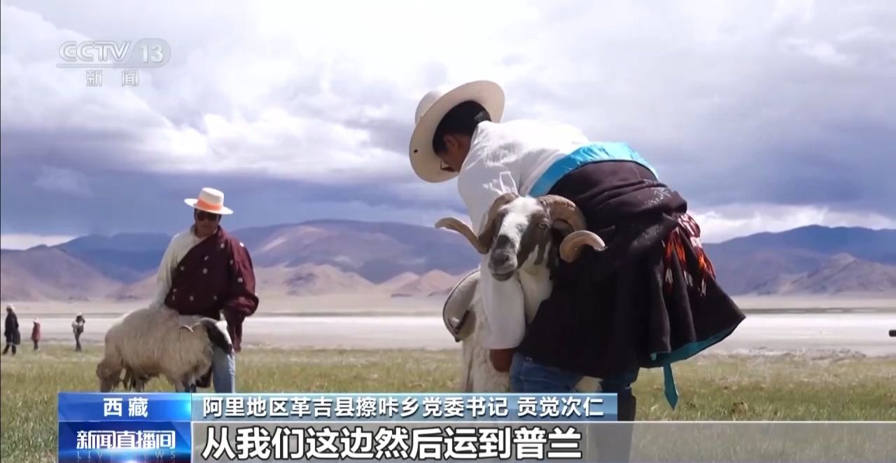 阿里地區(qū)革吉縣擦咔鄉(xiāng)黨委書記 貢覺次仁:歷史時期,我們這邊采鹽的湖稱作章倉三湖。鹽以綿羊作為交通工具,每只綿羊大概背20斤左右,從我們這邊運到普蘭、日喀則,到印度、尼泊爾等地,以物易物的方式進行交易。