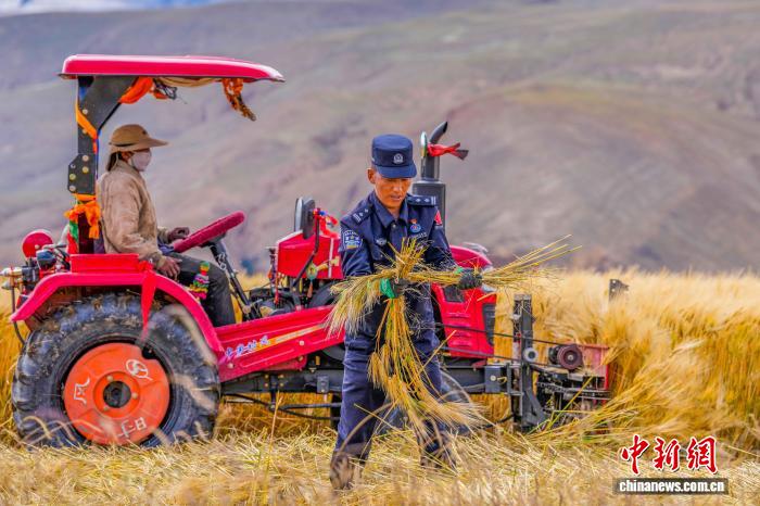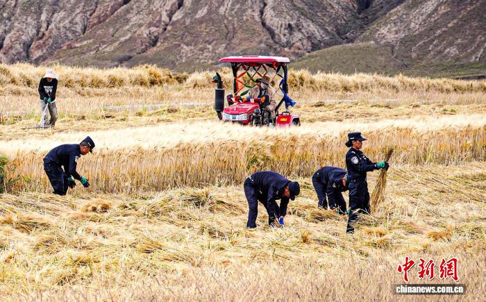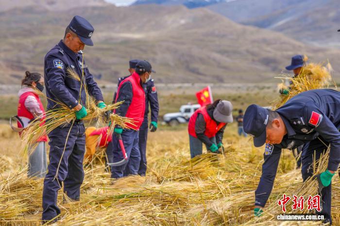 金秋時(shí)節(jié),青稞飄香。23日,西藏日喀則邊境管理支隊(duì)涅如麥邊境派出所民警們深入田間,在廣袤的田野上,與農(nóng)牧民一同俯身勞作,揮鐮收割,搶收青稞。