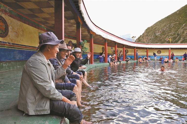 漫步在雪巴村,寬闊的柏油路蜿蜒向前,一座座民宿依山就勢、錯落有致?!艾F(xiàn)在已經(jīng)進入溫泉旅游旺季,最高峰一天接待游客達9000人次,真是人山人海?!瘪v雪巴村工作隊隊長兼第一書記白瑪仁青告訴記者,憑借沃卡溫泉這個資源,目前全村有172人直接從事旅游行業(yè),45家民宿蓬勃發(fā)展,戶均年增收近5萬元。