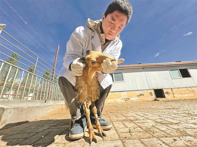 圖為工作人員正在檢查小羊健康狀況。