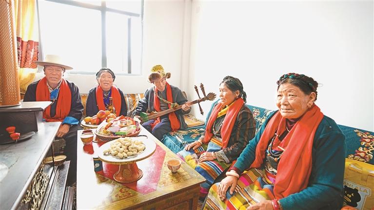 拉孜縣熱薩鄉(xiāng)強公村群眾在新居內(nèi)共度重陽佳節(jié)。記者 旦增嘎瓦 攝