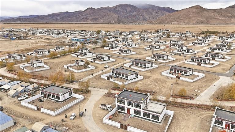 定日縣克瑪鄉(xiāng)林下村,51戶村民陸續(xù)搬進藏式新房,紅瓦白墻映著國旗,成為雪域高原上最溫暖的風景。