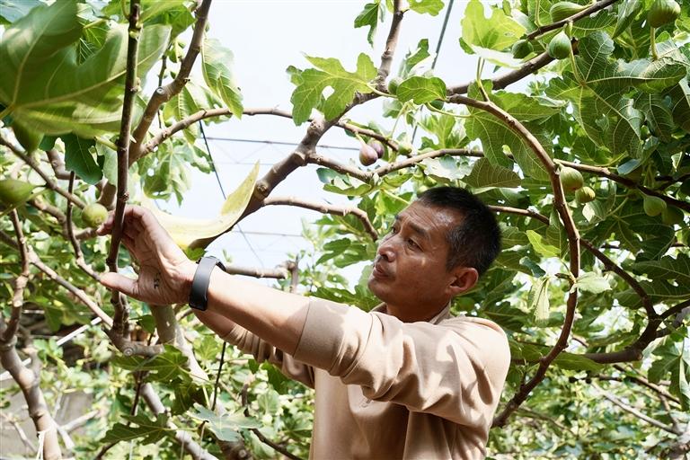 產(chǎn)業(yè)發(fā)展的紅利,最終實實在在地落在了村民的心坎上。張廣濤說:“如今我們掌握了成熟的無花果種植技術(shù),村民想學(xué),我們無條件傳授。我們不僅要讓自己的日子越過越好,還要帶動周邊的村民一起增收致富?!?/p>