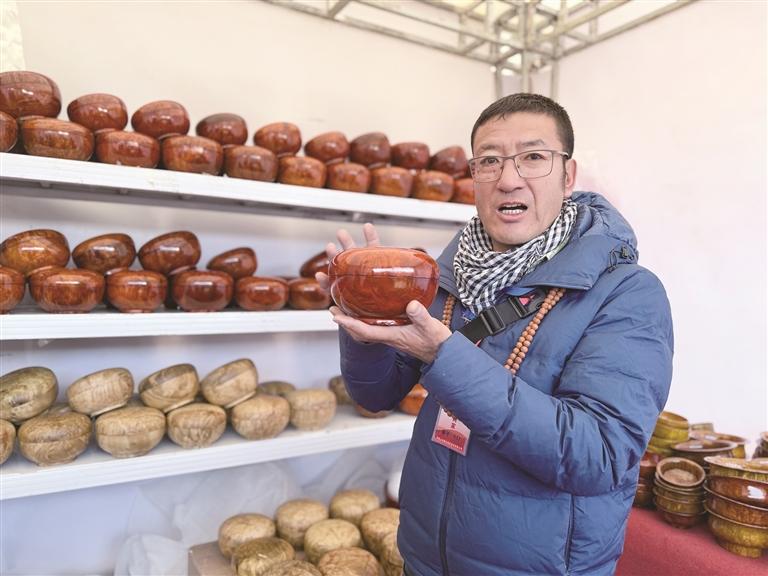 市民正在選購(gòu)木碗。文/圖 記者 旦增玉珍