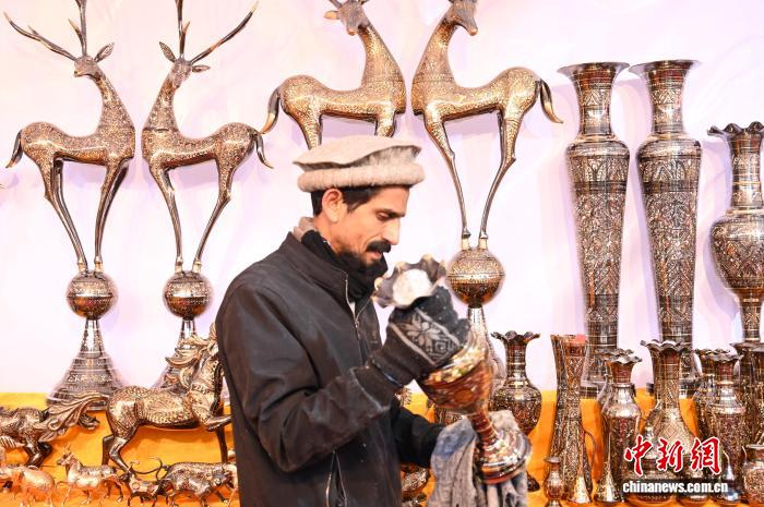 在專設的跨境商品區(qū),匯聚了來自南亞多國的特色商品。第二次前來參會的巴基斯坦客商Gull Zaman表示:“去年在這里銷售情況非常好,所以今年我又來了?!?/p>