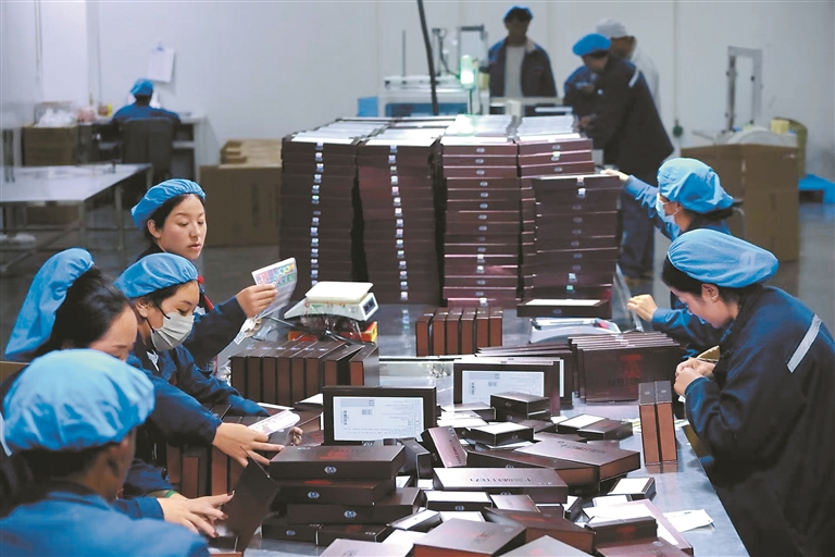 圖為在西藏昌都光宇利民藥業(yè)有限責(zé)任公司生產(chǎn)車間里,工人們?cè)诎b藥品。記者 平措朗加 溫凱 攝