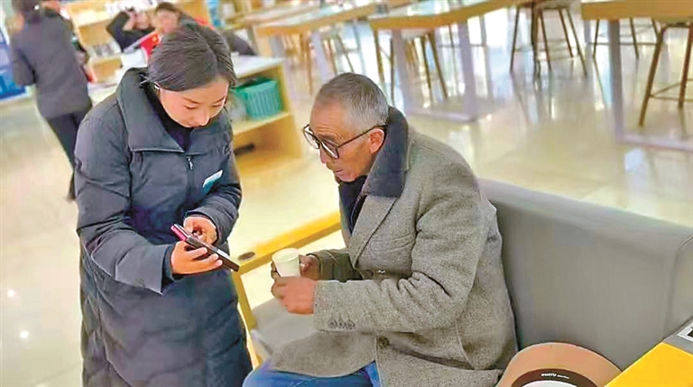 圖為中國(guó)移動(dòng)西藏公司工作人員向客戶介紹如何查詢消費(fèi)賬單。記者 李梅英 攝