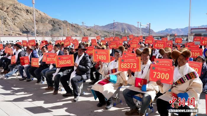 圖為聯(lián)合社員工身著盛裝參加分紅活動(dòng)。普布 攝