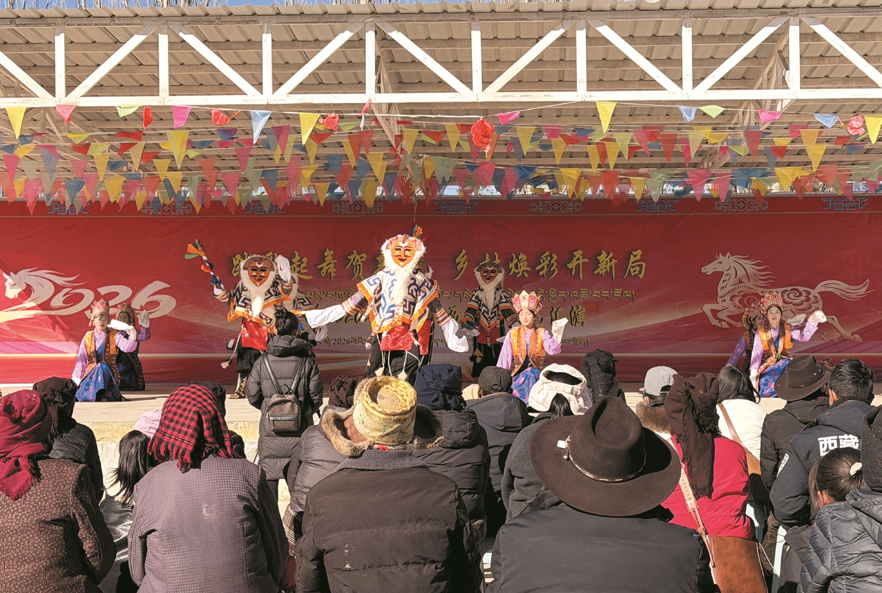 日前,林周縣卡孜鄉(xiāng)文化活動(dòng)中心院內(nèi)人頭攢動(dòng),以“踏歌起舞賀新春 鄉(xiāng)村煥彩開(kāi)新局”為主題的2026年春節(jié)文藝匯演如期舉行。隨著田嘎村文藝隊(duì)帶來(lái)的開(kāi)場(chǎng)舞《扎西雪巴》翩然起舞,這場(chǎng)連續(xù)三年舉辦的“村晚”正式拉開(kāi)帷幕。