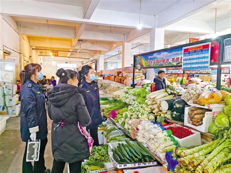 圖為工作人員在農(nóng)貿(mào)市場重點(diǎn)檢查“兩個(gè)責(zé)任”工作機(jī)制和索證索票、進(jìn)貨查驗(yàn)等制度落實(shí)。