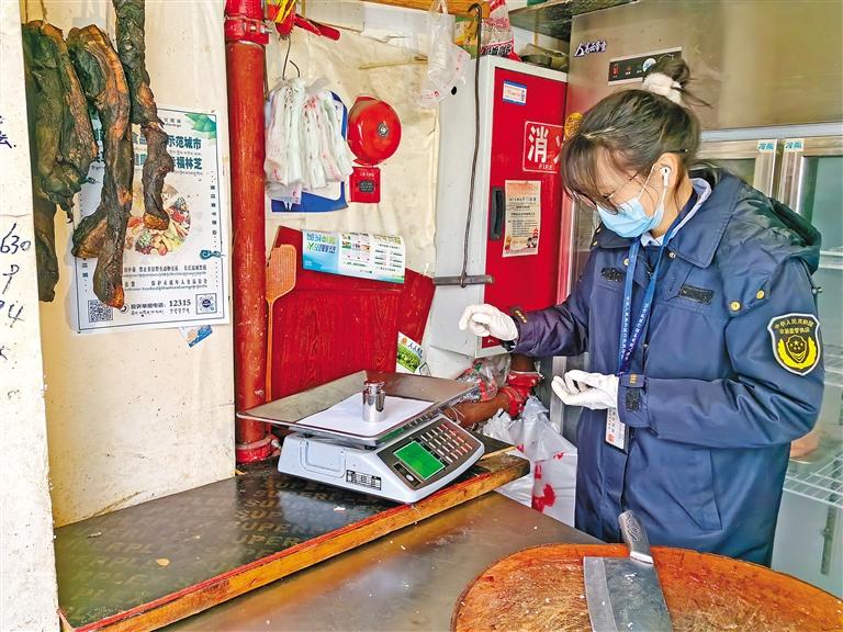圖為工作人員監(jiān)督抽查農(nóng)貿(mào)市場計(jì)量器具。