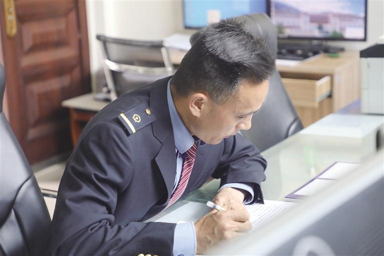 “這里的工作雖然看似單調(diào),實(shí)則責(zé)任很大。”賀文貴身穿深藍(lán)色的鐵路制服,胸前佩戴著亮閃閃的工牌,顯得精神抖擻。他像一名嚴(yán)謹(jǐn)?shù)膽?zhàn)士,緊盯著操作臺(tái),確認(rèn)信號(hào),口呼手指。 作為車站值班員,賀文貴每天的任務(wù)主要是監(jiān)視列車進(jìn)路和區(qū)間動(dòng)態(tài),保證行車安全。工作中的他認(rèn)真負(fù)責(zé),嚴(yán)格執(zhí)行標(biāo)準(zhǔn)化作業(yè),他常說:即使單人值守,該有的程序、作業(yè)步驟一項(xiàng)都不少,作業(yè)標(biāo)準(zhǔn)必須嚴(yán)格執(zhí)行,保證作業(yè)安全。
