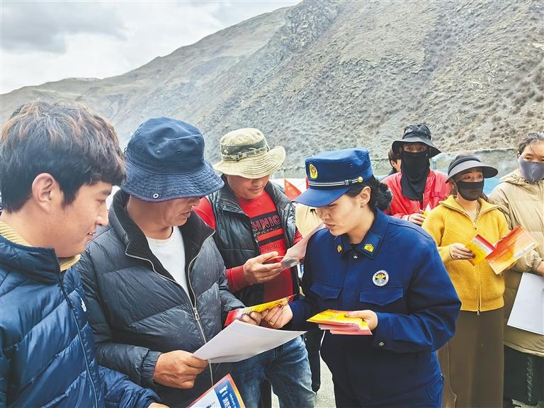 圖為宣傳員在蟲草采挖點向農(nóng)牧民群眾科普消防安全知識。肖暄 攝