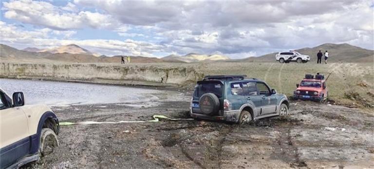 三輛車(chē)均陷入泥沼。圖由阿里地區(qū)公安處提供