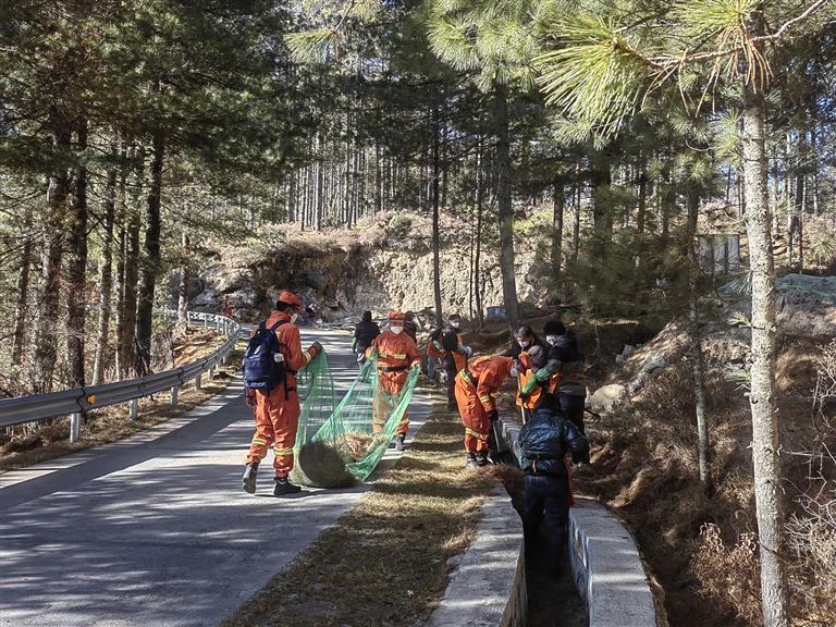 日喀則森林消防與駐地單位開展可燃物清理工作。