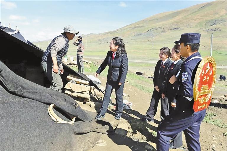 措美縣人民法院干警向放牧點(diǎn)群眾宣傳法律知識(shí)。 文/圖 記者 王香香