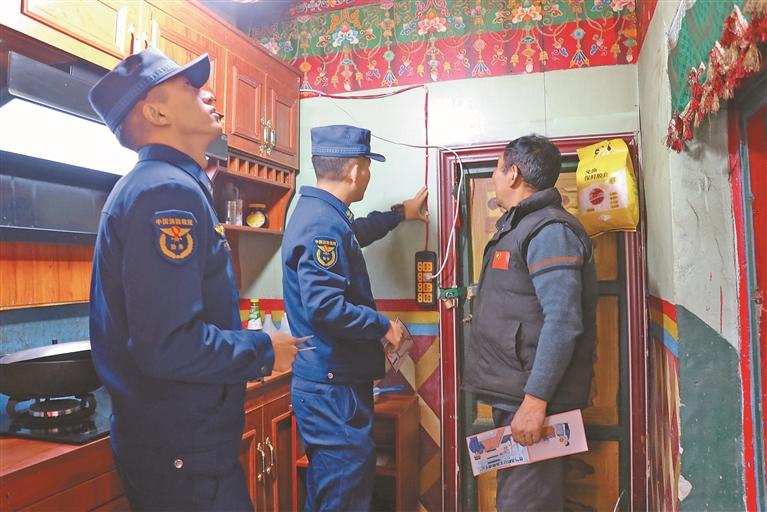 康馬縣消防救援大隊宣傳員深入農牧民家中排查火災隱患。次仁普赤 攝