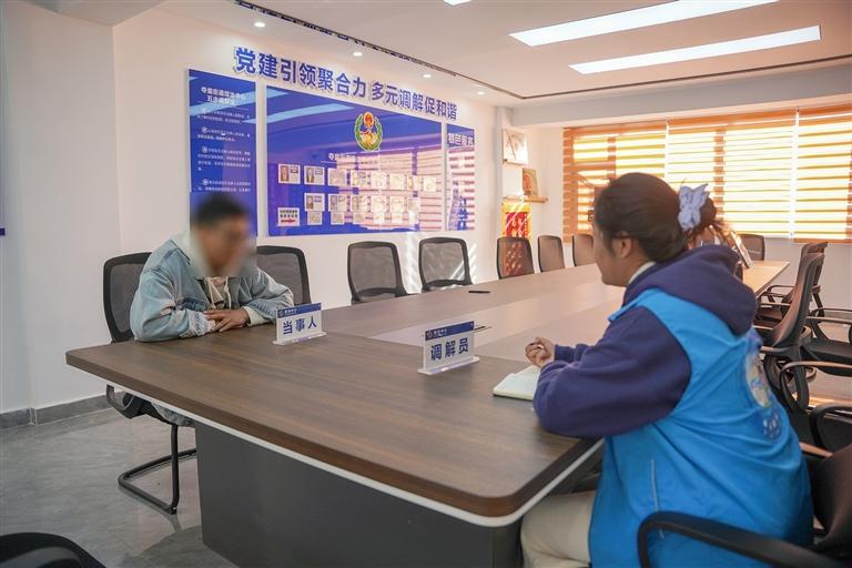 2024年,剛走出大學校門的旦增卓嘎,因性格柔和、對“化解矛盾”充滿期冀,看到專職調解員招聘信息后便毅然報名?!捌鸪跸氲锰貏e簡單,覺得只要懂點法律,把雙方說和就行?!被貞浧鸪跞肼毜男膽B(tài),旦增卓嘎笑著說。