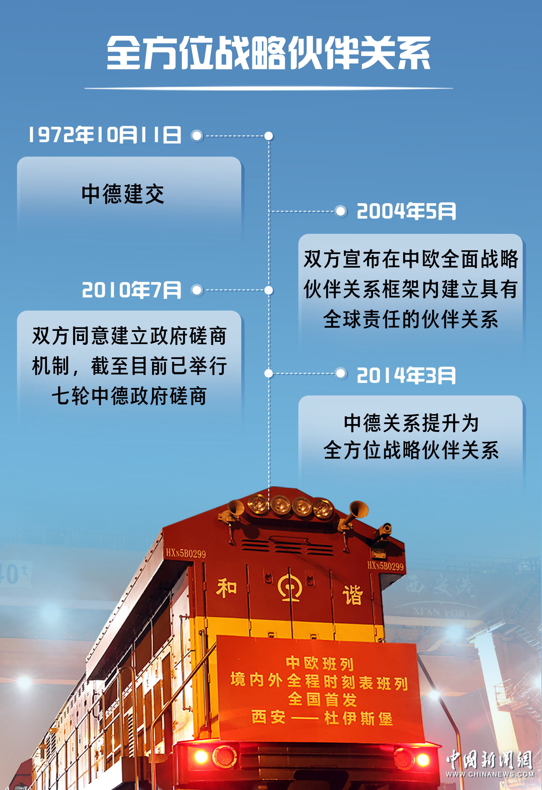 中德1972年建交,2014年提升為全方位戰(zhàn)略伙伴關(guān)系。近年來,中德關(guān)系保持高水平發(fā)展,兩國高層交往密切。