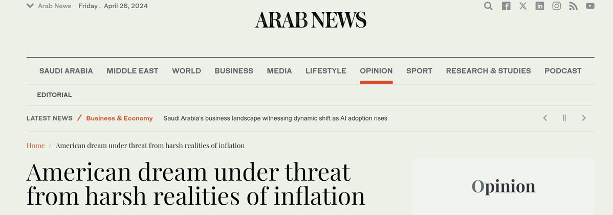 沙特阿拉伯媒體《阿拉伯新聞》網(wǎng)站4月24日刊發(fā)評論文章稱,美國通脹高企,物價不斷上漲,導(dǎo)致民眾的購買力持續(xù)下降,基本生活消費品成為無力負(fù)擔(dān)的“奢侈品”。“美國夢”被殘酷的現(xiàn)實擊潰。文章批評美國政府對通脹危機(jī)的反應(yīng)嚴(yán)重不足,將黨派問題置于解決民眾的迫切需求之上,削弱了民眾的信任感。