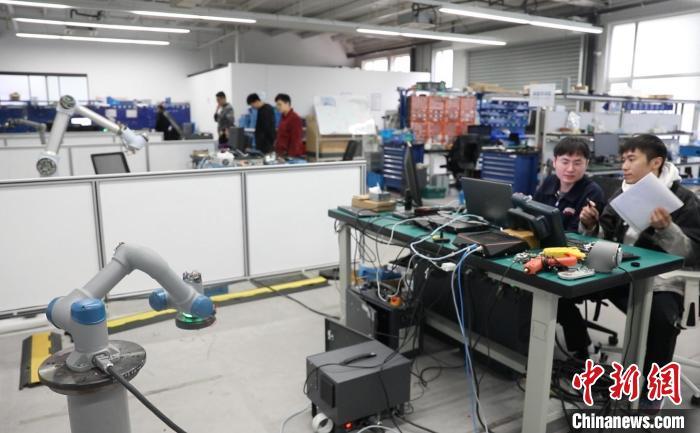 人工智能讓中國(guó)制造業(yè)從“追趕者”變身“領(lǐng)跑者”。圖為中科新松的工作人員正在對(duì)機(jī)器手臂進(jìn)行位置標(biāo)定?!埡鄠?攝