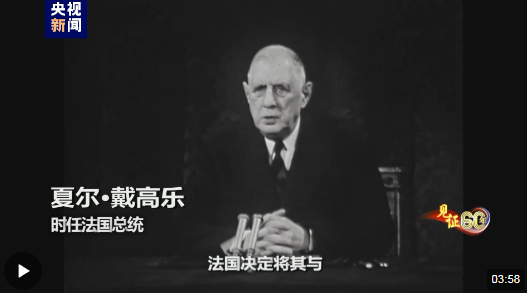 時任法國總統(tǒng) 夏爾·戴高樂:“法蘭西共和國決定將其與中華人民共和國的關(guān)系提升到正常的外交關(guān)系層面?!?/p>