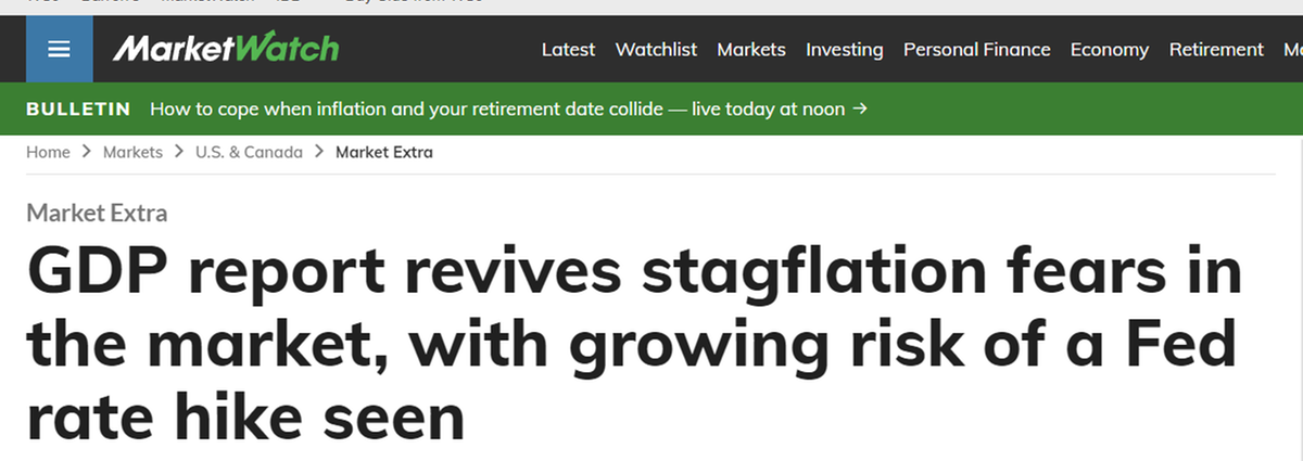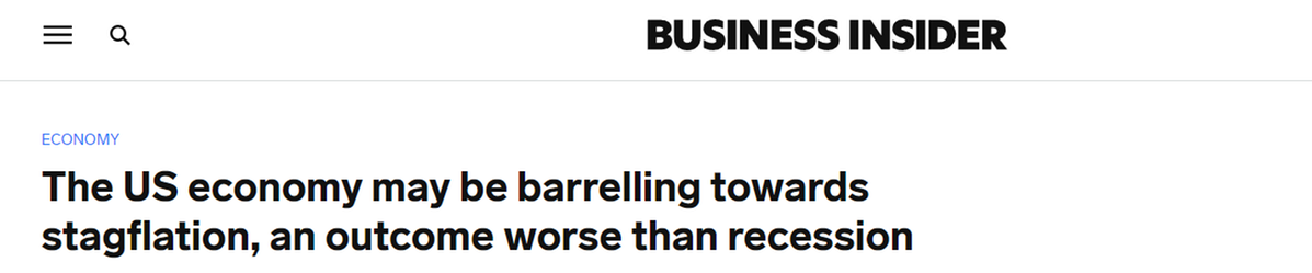 美國(guó)財(cái)經(jīng)新聞網(wǎng)站市場(chǎng)觀察25日?qǐng)?bào)道稱,近期的美國(guó)經(jīng)濟(jì)數(shù)據(jù)給交易員、經(jīng)濟(jì)學(xué)家和其他人士敲響了警鐘,他們開(kāi)始表達(dá)對(duì)這個(gè)世界最大經(jīng)濟(jì)體或?qū)⑾萑霚浀膿?dān)憂。滯脹是通脹上升和經(jīng)濟(jì)增長(zhǎng)放緩的結(jié)合,被美聯(lián)儲(chǔ)政策制定者視為所有可能結(jié)果中最糟糕的,因?yàn)樗冉?jīng)濟(jì)衰退更難解決。