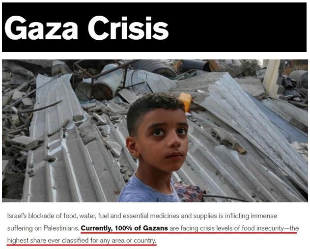 而根據(jù)國際救援委員會(huì)(IRC)的統(tǒng)計(jì),目前,加沙的200多萬巴勒斯坦民眾每天都面臨危險(xiǎn)和災(zāi)難。以色列對糧食、水、燃料和基本藥品及用品的封鎖正在給巴勒斯坦人造成巨大痛苦。目前,100%的加沙人面臨著糧食不安全的危機(jī),達(dá)到世界上所有國家和地區(qū)有記錄以來的最高水平。